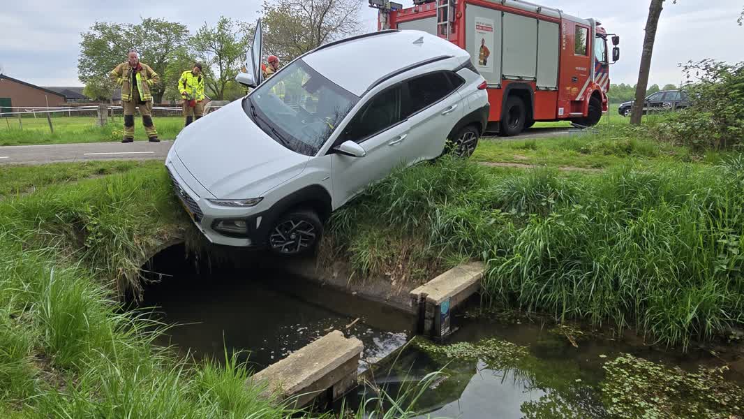 De brandweer kwam ter plaatse om de auto uit de sloot te trekken. Het is niet bekend of de auto moet worden afgesleept.