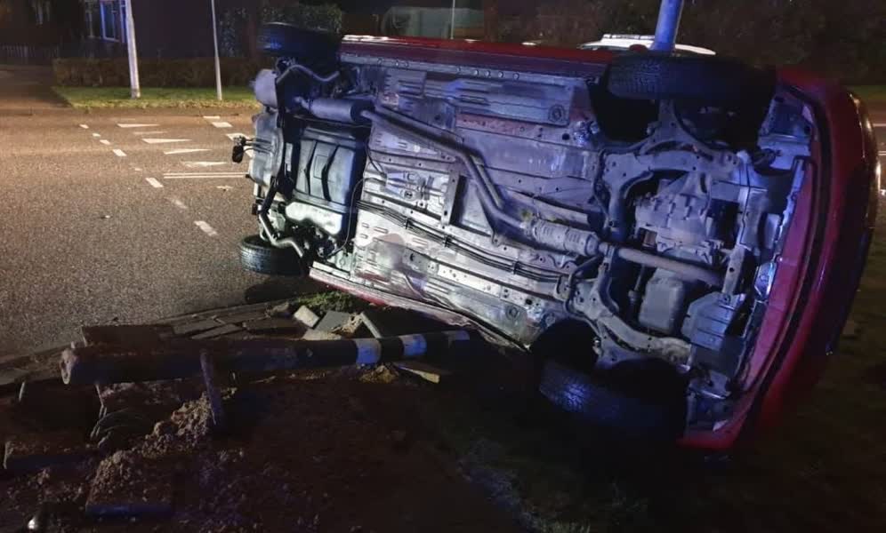 Het ongeval gebeurde rond 06.00 uur op de kruising van de Ringbaan-Noord met het Noordeinde. Vermoedelijk reed een van de bestuurders door rood, waardoor de voertuigen op elkaar knalden. Een van de auto’s eindigde door de klap op de zijkant.