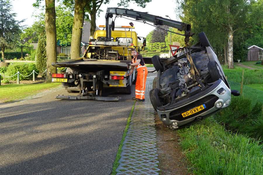 Haar auto is uit de sloot getakeld en afgesleept. De Deventer Kunstweg is enige tijd afgesloten geweest in verband met het bergen van de auto.