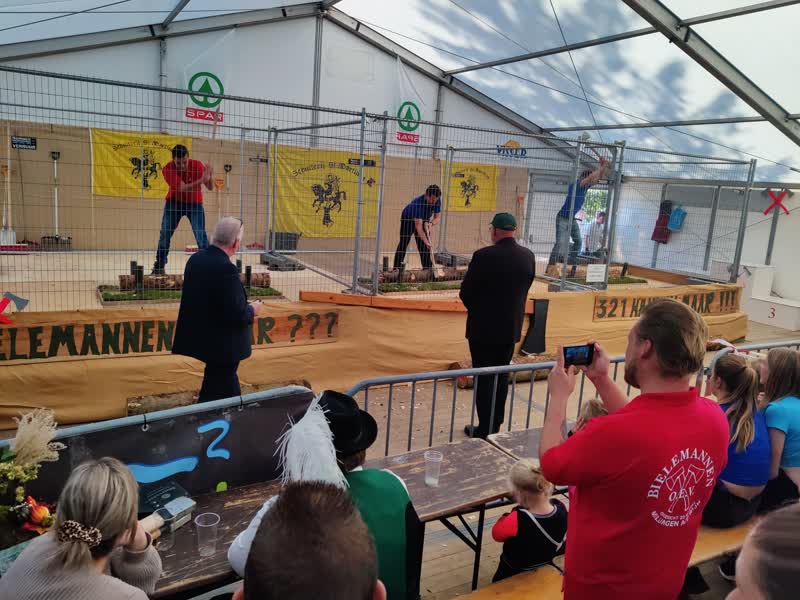 De deelnemers kregen door een loting een stam aangewezen. De opdracht klinkt dan simpel, zo snel mogelijk de stam doormidden hakken. “Je moet er wel techniek voor hebben”, zegt Bas Teunissen van de schutterij uit Nieuw-Wehl, die weleens een stam in zestien seconden doorsloeg. Inmiddels zijn ook dames welkom om te hakken op het Bielemantreffen, maar het vergt wel flink wat voorbereiding. “Je kan niet zomaar meedoen, je moet er wel kracht voor hebben”, zegt deelneemster Suzanne Horstink van de schutterij uit Loil. “Maar er zijn ook zat mannen die geen kracht hebben, dus daar passen we goed tussen.”