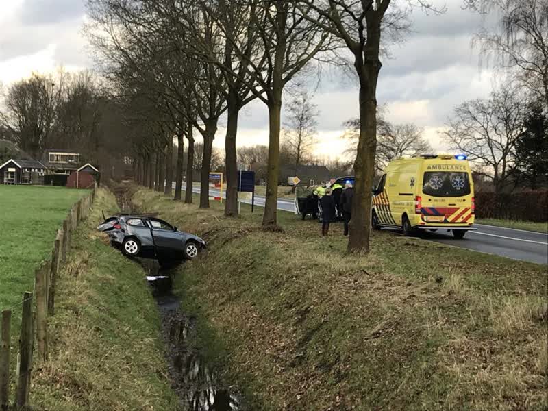 Het ongeval vond omstreeks 14.00 uur plaats op de Kruisbergseweg, aan de rand van Doetinchem. Door nog onbekende oorzaak raakte de bestuurder een middengeleider en kwam tussen de bomen door boven een sloot tot stilstand. De automobilist raakte niet gewond, maar de bijrijder moest wel overgebracht worden naar het ziekenhuis.
