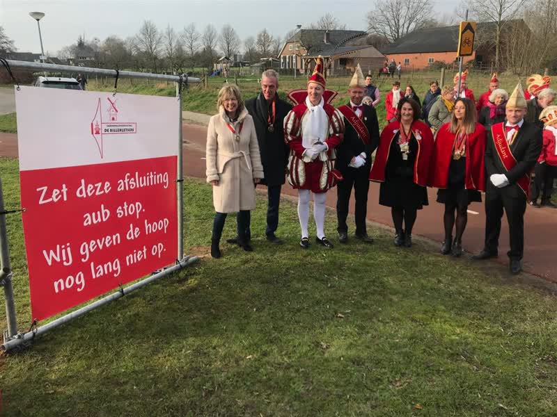 actievoerende buurtbewoners liet de Dichterense carnavalsvereniging hun licht schijnen over het thema. Ingrid Lambregts kon de carnavaleske actie wel waarderen. "Het mag altijd wel een beetje schuren met zo'n ludieke stunt", vertelt de wethouder. "Het is dapper dat ze een onderwerp van twee jaar pakken omdat het nog steeds leeft. Ik zeg dan: 'top dat jullie dit doen', want het houd ons bij de les als gemeente en dat gebeurt op deze manier." De Billekletsers vindt de afsluiting van de rotonde jammer. "Wij hebben een goede band met wijk De Hoop en we willen dat die verbinding blijven behouden", zegt Borkes.