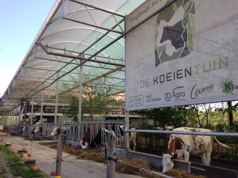 “Het probleem is dat wij de Koeientuin vanwege de eisen van de biologische landbouw in moeten strooien”, aldus melkveehouder Chris Bomers. Dat houdt in dat hij stro of zaagsel over de ondergrond moet verdelen. “Wij hebben een comfortabele mat van ongeveer tien centimeter rubber.” De eisen voor een biologische stal zijn dat de koeien droog en comfortabel moeten liggen en dat is volgens de boer het geval in zijn innovatieve stal. “Wij zouden graag een individuele ontheffing willen krijgen voor deze casus. Volgens mij liggen de koeien er aardig comfortabel bij.” Bomers is de eerste Nederlandse boer die experimenteert met een rubberen ondergrond.