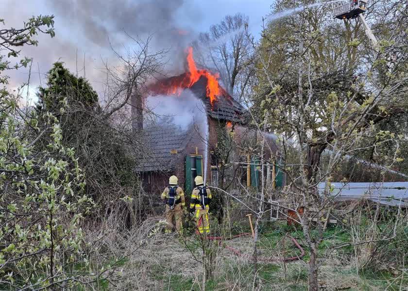 Bij een brand in de rieten kap van een woning in Neede is een klein deel van het dak verloren gegaan...