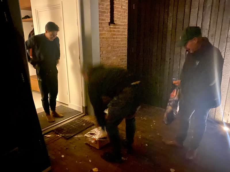 "We zagen dat hij in quarantaine moest en weten dat hij een vegetariër is", zegt Thijs Wieggers uit Mariënvelde, een van de boeren die in de auto stapte. "Dus we dachten we brengen even een ondersteuningspakket als ludieke actie." Naast Wieggers waren konijnenfokker Henk Oonk, varkensboer Tim Krabben en Rutger van Lier naar Nijmegen gereden. Ze boden een pakket met onder meer konijnenvlees, varkensvlees, eieren, melk en rundvlees aan.