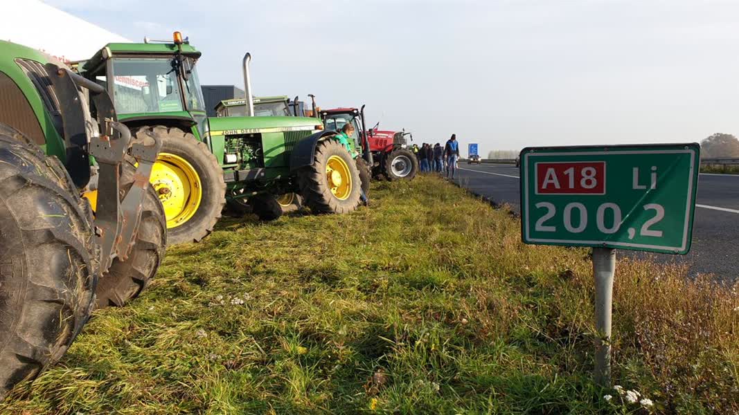 Agrariërs hebben maandagmiddag langs op- en afritten van snelwegen actie gevoerd als steun voor het Landbouw Collectief, die onderhandelen met de overheid over de aanpak van de stikstofcrisis. Zo ook bij de A18 in Doetinchem, waar de aanwezige boeren met de actie druk wilden uitoefenen op minister Carola Schouten.