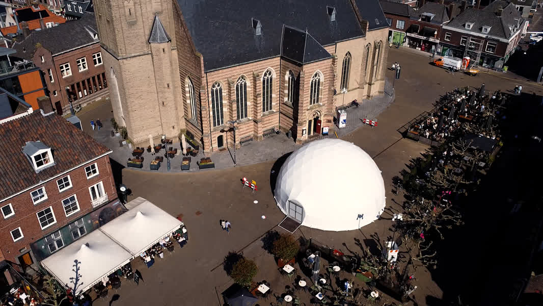 "Deze week is het tachtig jaar geleden dat Doetinchem drie keer is gebombardeerd. Een stichting in Doetinchem wilde dit herdenken en benaderde ons met de vraag hoe ze de film op een bijzondere manier konden tonen. Toen bedachten we om zo’n 'dome' neer te zetten”, legt medeontwerper Hans Peter Helder uit.
