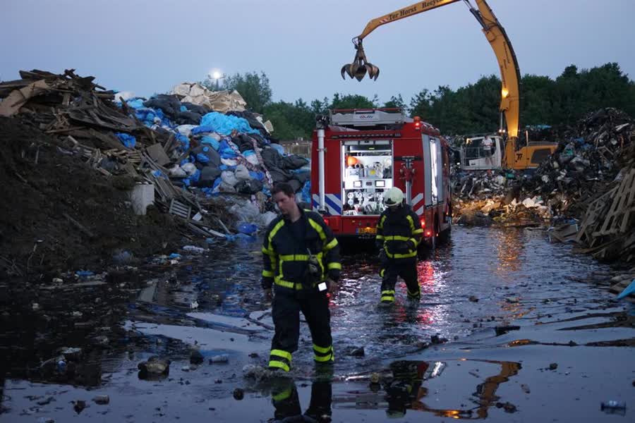 De brandweer heeft geadviseerd om de afvalbult verder uit elkaar te halen en te verspreiden over het terrein. Door de bluswerkzaamheden ligt veel water op het terrein. Het verspreide afval kan daarin afkoelen, waardoor de broei in de afvalbult verholpen wordt.