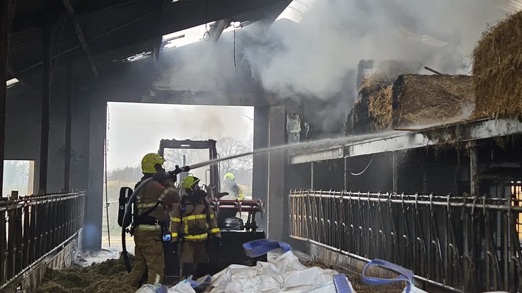 Brand in schuur vol koeien op boerderij in Heelweg