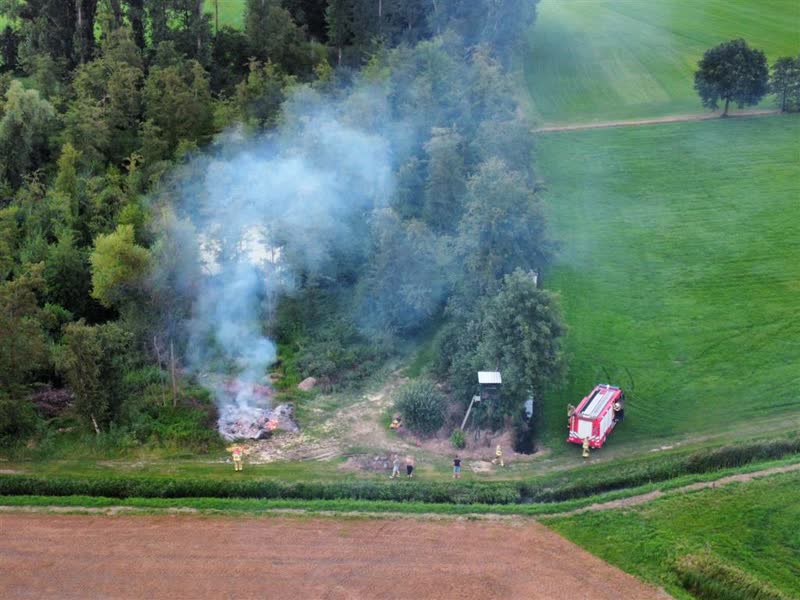 In het buitengebied van Megchelen is zondagavond een kleine brand ontstaan in een stapel groenafval. De brandweer vermoedt dat het vuur is aangestoken.