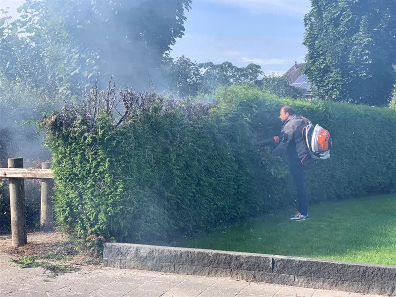 Een coniferenhaag in de tuin aan de Molenweg vatte rond 11.15 uur vlam. Omstanders schoten direct te hulp. Ze maakten gebruik van een bladblazer om het vuur onder controle te krijgen. Dat lukte deels, de brandweer hoefde na aankomst het vuur alleen nog na te blussen.