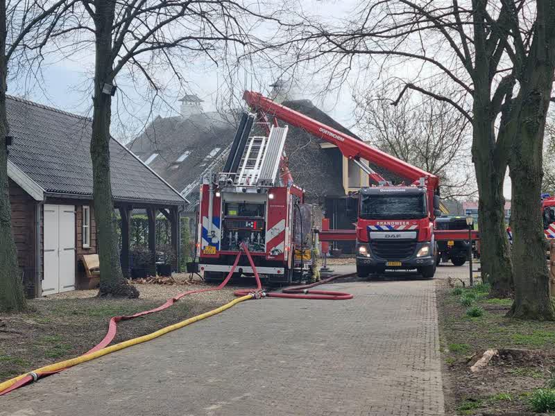 Bij een woning in Drempt is dinsdagmiddag een brand ontstaan in de rieten kap van het huis. De brandweer is met meerdere blusvoertuigen aanwezig.