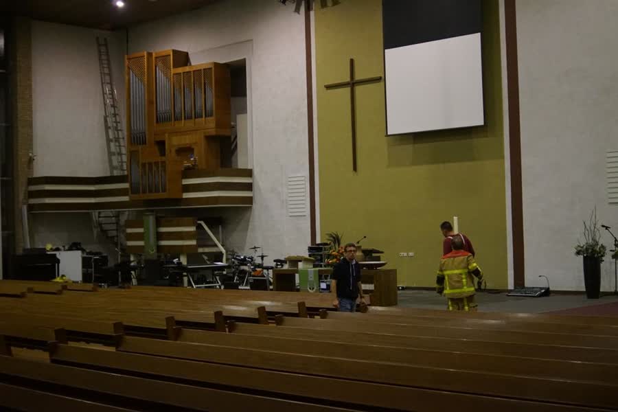 Het brandje werd omstreeks 23.10 uur gemeld vanaf de Ludgerstraat. Een persoon was in de kerk aan het werk om het geluidssysteem gereed te maken voor een aankomende dienst. De man ontdekte de brand in de buurt van een lamp op negen meter hoogte.