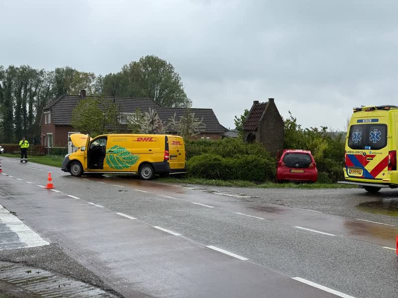 Iets voor enen ging het mis op de beruchte kruising van de Kerkhuisstraat en de Zuider Markweg. Het bestelbusje moest voorrang verlenen aan de auto, maar deed dat niet. De auto kwam bij het Mariakapelletje tot stilstand.