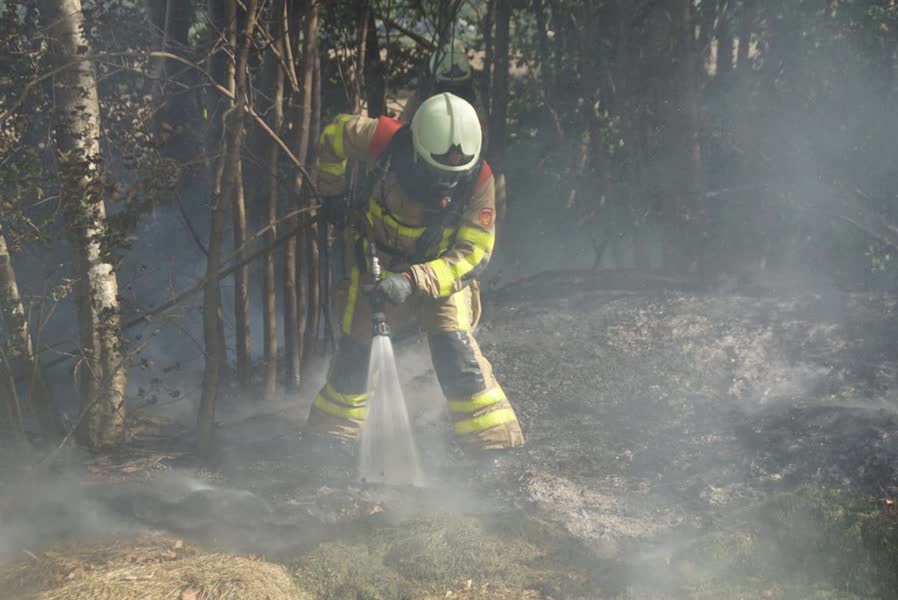 Mogelijk was broei de oorzaak van de brand. Voorbijgangers ontdekten het vuurtje en waarschuwden de bewoners van het perceel. Die probeerden vervolgens zelf het vuur te blussen, maar dat lukte niet.