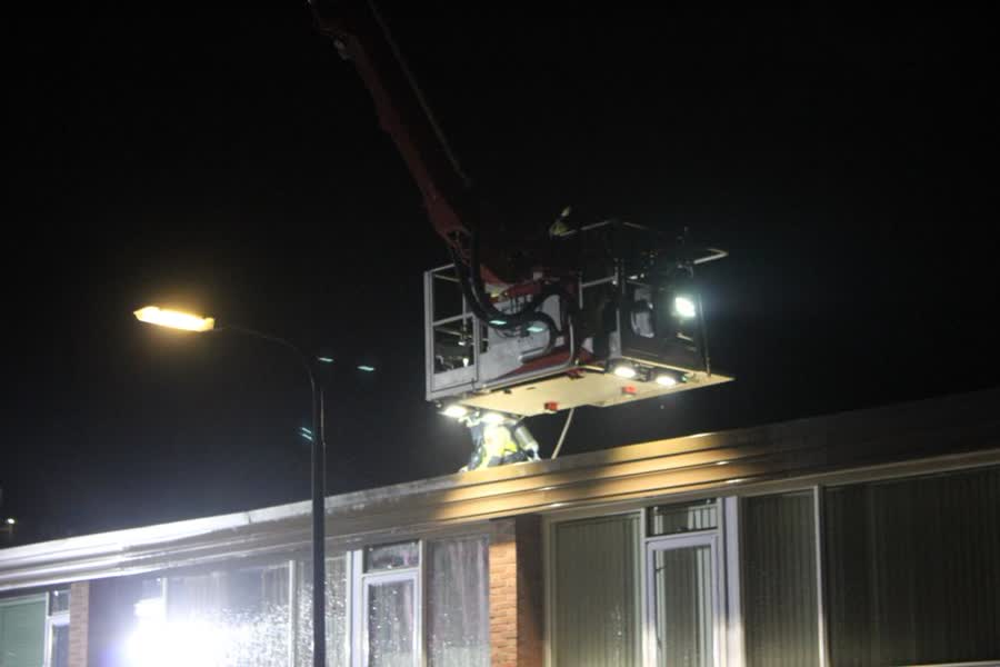 De brandweer kwam met een tankautospuit en een hoogwerker ter plaatse om de hitte van het platte dak, dat afgedekt is met bitumen, van drie woningen weg te nemen. Mogelijk is vuurwerk de oorzaak van het smeulende bitumen.