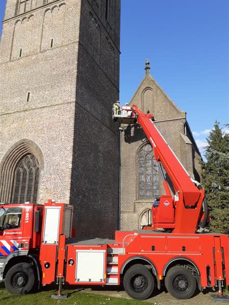 Eerder deze week kreeg de Dierenambulance ook al hulp van de brandweer toen een vogel vastzat in een hoge regenpijp van de kerk in Didam. "Het gefladder was opgevallen en de melding kwam bij ons binnen van het dier in nood", aldus de organisatie, die hulp kreeg van het korps uit 's-Heerenberg. Ook kwam de brandweer uit Doetinchem ter plaatse met een hoogwerker. "Al heel snel had de brandweer de vogel uit de regenpijp bevrijd. De vogel mocht in de dierenambulance even op adem komen en is kort daarna door ons weer vrijgelaten."