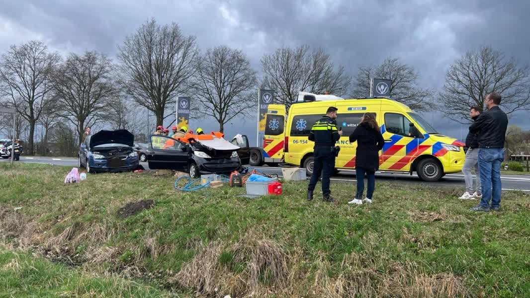 Brandweer knipt dak van auto na kettingbotsing