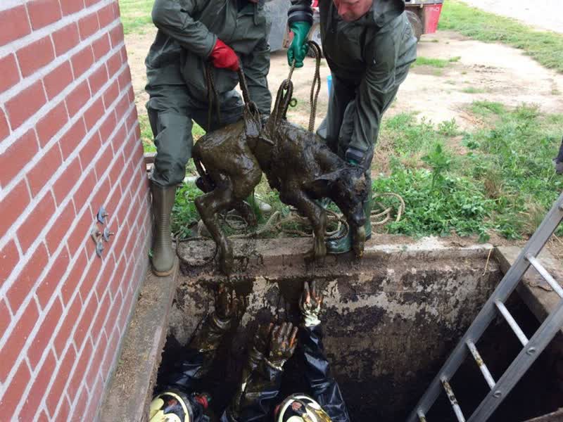 Brandweer Gendringen is ter plaatse gekomen om het stierkalf uit de gierput te bevrijden. Enkele brandweerlieden zijn de mest ingegaan om het jonge beestje weer op het droge te krijgen. Vervolgens is het afgespoeld met warm water.