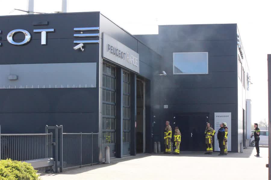 Het voorval vond plaats omstreeks 13.00 uur bij de Peugeot-dealer. Er werd een brandmelding gegeven en bij het openen van de deuren kwam er veel rook naar buiten. Het bleek echter te gaan om een mistgordijn dat was afgegaan. Dat is een noodmaatregel dat in werking treed als het inbraakalarm afgaat.