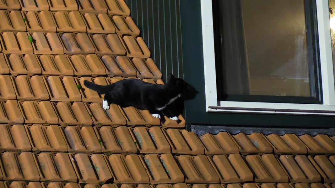 Na een uur koos de laatste kat ervoor om zelf het dak te verlaten en naar beneden te gaan, op het moment dat de brandweer net het dak bereikt had. Uiteindelijk zijn de kittens veilig op de grond terechtgekomen bij hun baasje