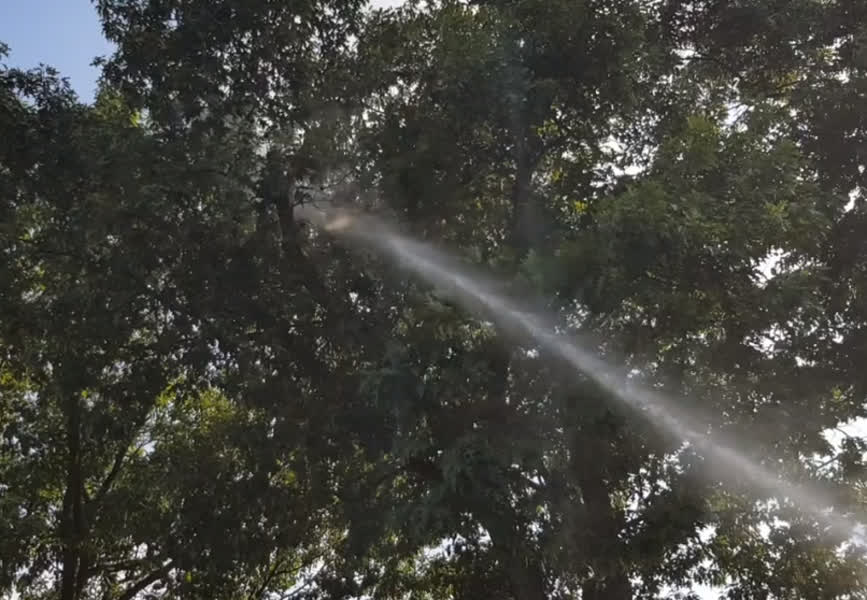 Op videobeelden van Mooren is te zien dat de kat uit de boom valt nadat brandweerlieden een waterstraal op het dier richten.