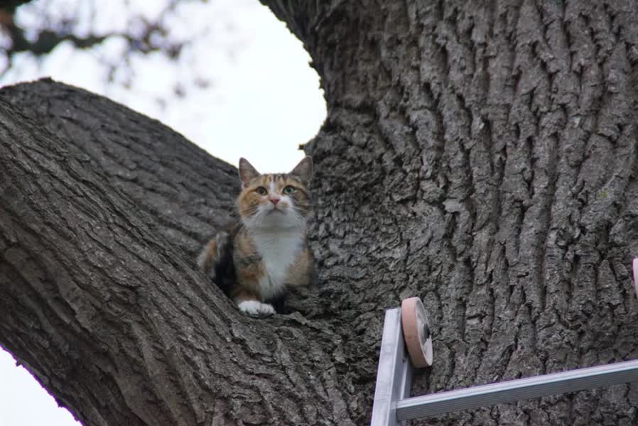 Eenmaal weer op de grond koos de poes het hazenpad. Onbekend is van wie het dier is, volgens buurtbewoners zou het diertje al sinds vrijdag in de boom gezeten hebben.