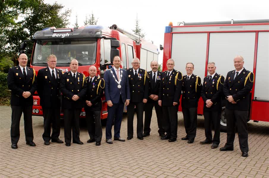 Tijdens de bijeenkomst van de vrijwillige brandweer werden ook vijf vrijwilligers in het zonnetje gezet, omdat zij een jubileumjaar vieren. Daarnaast is er ook afscheid genomen van vijf brandweermannen, die allen meer dan 28 jaar gediend hebben als vrijwilliger.