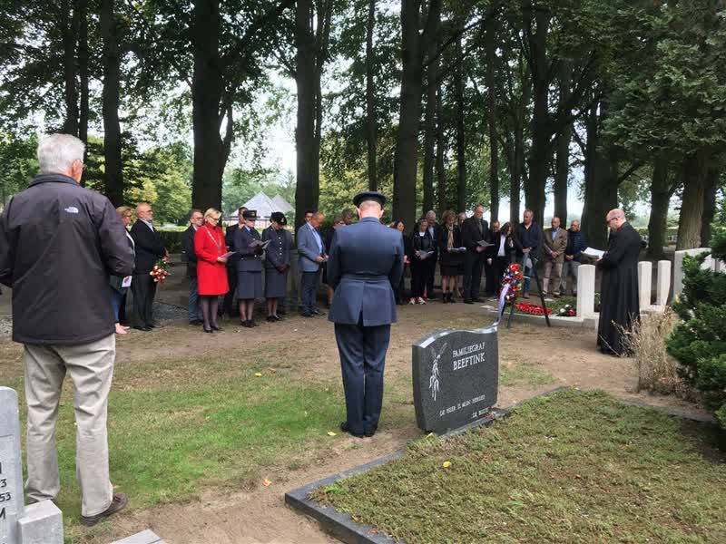 “Het is fijn om erkenning te hebben van de Britse overheid dat dit plek is waar het vliegtuig is neergestort en dat onze grootvader hier rust, mijn grootvader”, zegt Elissa Campbell-Rumsey. Zij is de kleindochter van de omgekomen Flying Officer Derek Heather. De herdenking werd geleid door een dominee van de Royal Air Force (RAF) die een korte dienst leidde op de begraafplaats. Een trompettist van de RAF speelde de Last Post en burgemeester Marianne Besselink legde namens de gemeente Bronckhorst een krans. Peter Monasso is al vanaf 1975 bezig met zijn onderzoek naar de crash en is blij dat er een afsluiting is en erkenning namens de Britten. “Het is belangrijk dat zes vermiste bemanningsleden ook een officieel graf hebben gekregen”, zegt Monasso. “Dat is voor de nabestaanden erg belangrijk, want vermist is erger dan dood.”