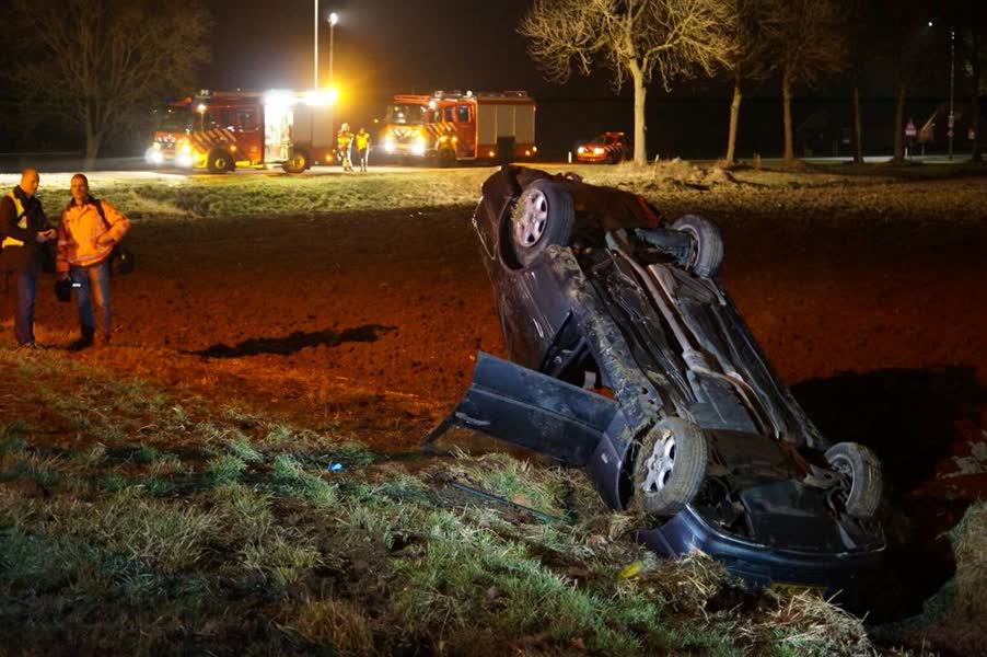 Bij aankomst van de hulpdiensten bleek de auto te zijn verlaten. Het is dan ook niet duidelijk of de inzittende(n) gewond is geraakt.