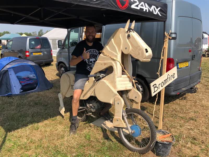 Ieder jaar komen de meest bijzondere creaties voorbij bij de deelnemers van de cross. Remco uit Borculo doet dit jaar mee met een familielid van Bonfire, namelijk Bromfire.