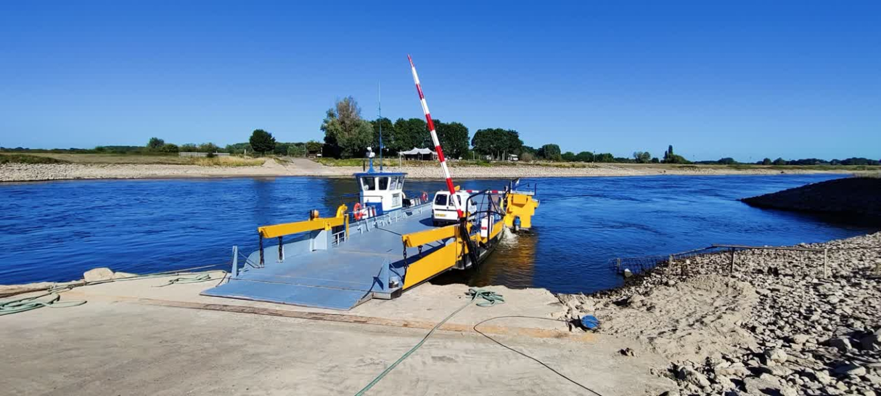 Een bijzonder gezicht maandagavond bij de veerpont bij het stadje Bronkhorst. Militairen van de 43 G...