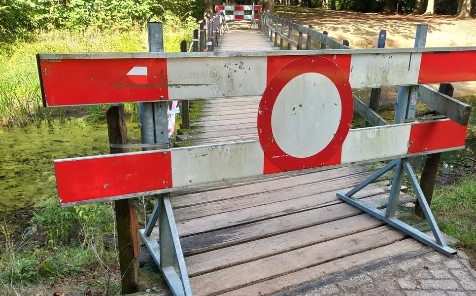 De wandel- en fietsbrug over de Veengoot in Vorden wordt binnenkort vervangen door de gemeente Bronc...