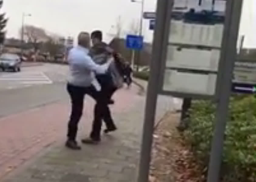 Het filmpje, dat is opgenomen bij de bushalte Loolaan, is inmiddels meer dan 100.000 keer bekeken. Te horen is dat de twee mogelijk onenigheid hebben over afgepakte oordopjes.