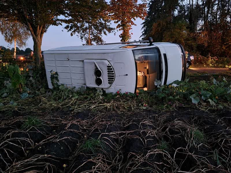 Het eenzijdige ongeval vond rond 19.30 uur plaats op de Halle-Heideweg. De bestuurder kwam vanuit de richting Halle toen hij in een bocht in de berm terecht kwam. Na een stuurcorrectie vloog het voertuig vervolgens naar links, waar het busje een boompje raakte. Het voertuig kwam tot stilstand in een aardappelveld.