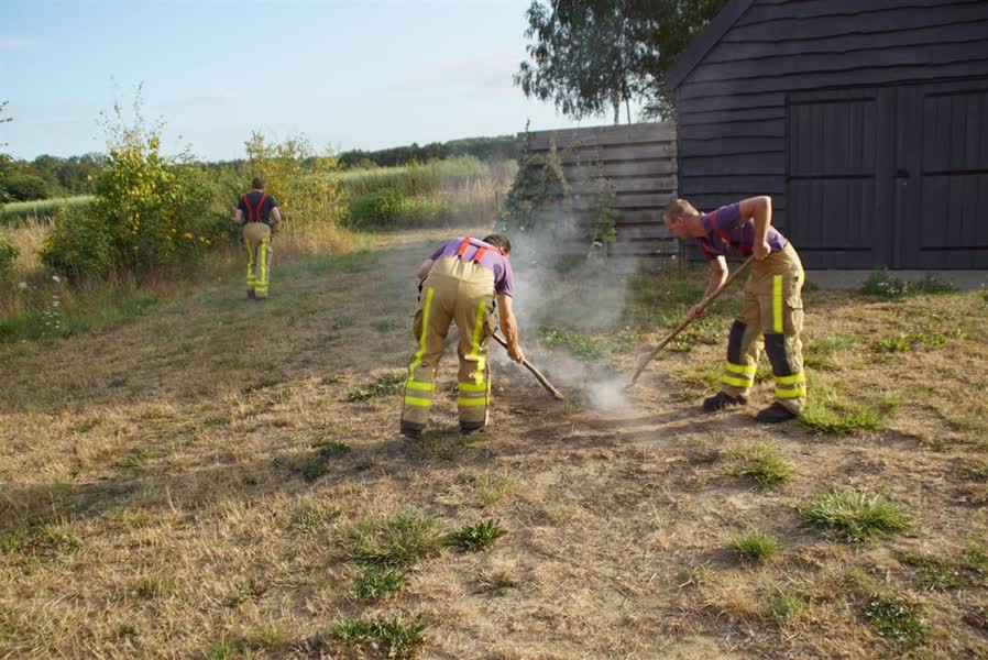 De buurman heeft de brandweer gewaarschuwd. De wagen kon in eerste instantie niet bij het vuur komen, omdat het gebied afgesloten was door een hek. Om toch zo dicht mogelijk bij de brand te komen is de brandweerwagen door een weiland gereden.