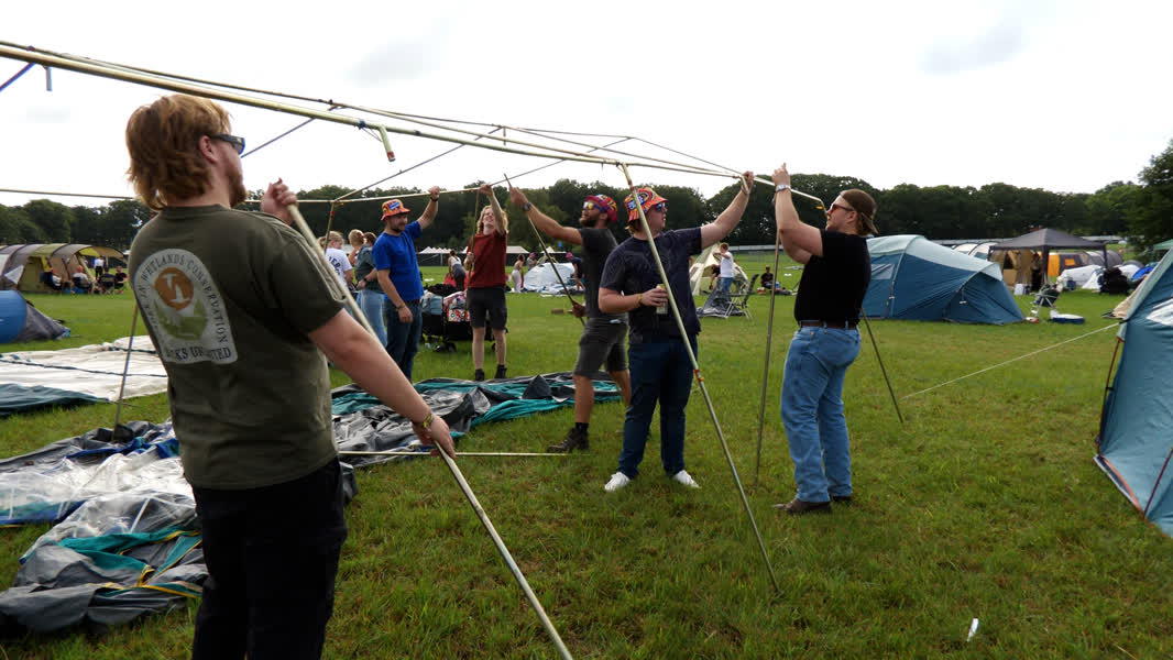 De meeste festivalgangers hebben hun slaapplek op de Zwarte Cross inmiddels gerealiseerd. Met het nodige getier en gevloek werden de tenten opgezet. 'Wie zou er ook alweer de handleiding meenemen?' en: 'Zat die scheur er vorig jaar ook al in?'