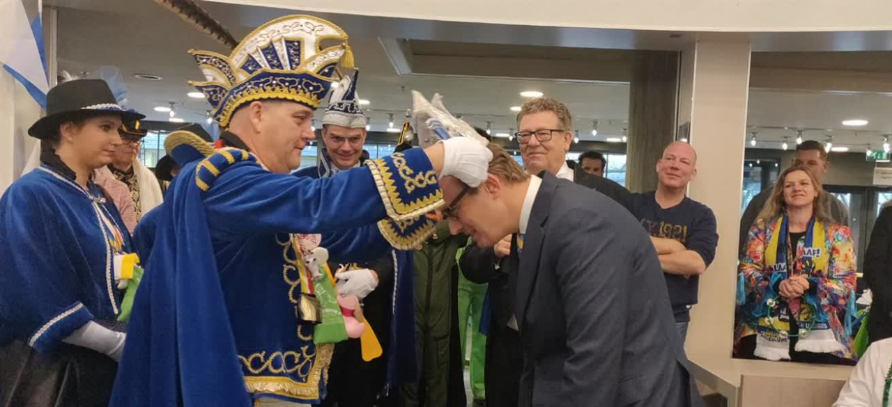 Het carnaval in Doetinchem is zaterdagochtend weer losgebarsten na de traditionele sleuteloverdracht in de raadzaal. Burgemeester Mark Boumans heeft met de overhandiging van de sleutel aan Stadsprins Bertie 1 de macht van de stad overgedragen aan carnavalvierend 'Leutekum'.