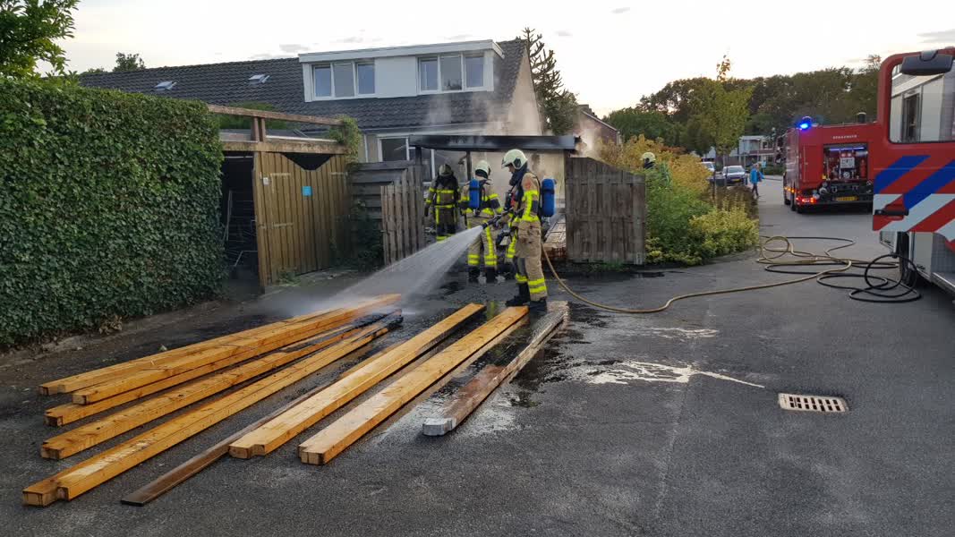 De brand ontstond maandagavond rond 19.30 uur onder de carport van de woning. Daar lag hout op elkaar gestapeld dat door onbekende oorzaak vlam vatte. De brandweer heeft bij aankomst het hout van het erf gehaald en weten te blussen. Er kon echter niet worden voorkomen dat de carport en de naastgelegen schutting veel schade opliepen.
