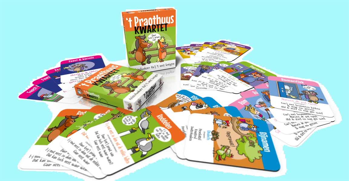 “Het idee kwam eigenlijk van Gerard Wevers”, vertelt Rouwenhorst. “Hij had dat ook ergens anders weer gezien. En we dachten zo voor Sinterklaas en ook voor Kers is dat wel een heel leuk cadeau.” In het kwartet komen allerlei thema’s aan bod. “We hebben bijvoorbeeld het thema romantiek, maar ook een rubriek begroeten, afscheid nemen en bijnamen.”