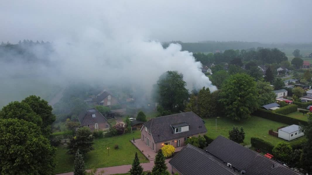Bij een brand in de rieten kap van een woning in Neede is een klein deel van het dak verloren gegaan...
