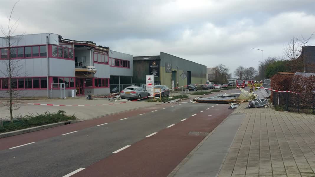 complete gevel van een bedrijfspand weggeblazen. Het materiaal is op een geparkeerde auto en op de straat terechtgekomen. Hulpdiensten hebben vanwege de omvang opgeschaald naar een groot incident. Volgens de gemeente zijn er geen gewonden gevallen en is het pand ontruimd. Er wordt vanwege het gevaar afgeraden om de plek te bezoeken. De weg is ter plaatse afgesloten.