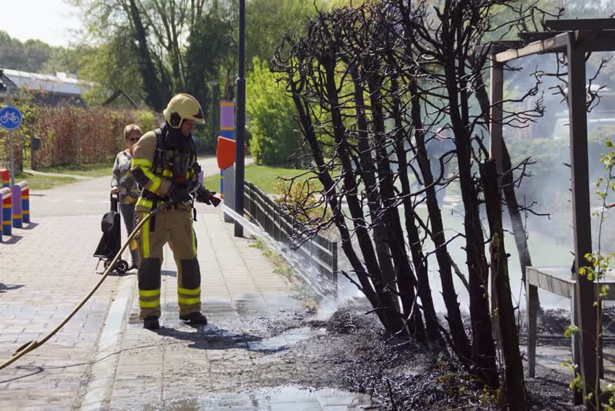 De bewoner heeft in eerste instantie zelf met de tuinslang gepoogd het vuur te doven. De brandweer kwam vervolgens ter plaatse om na te blussen. Niemand is gewond geraakt bij de brand.