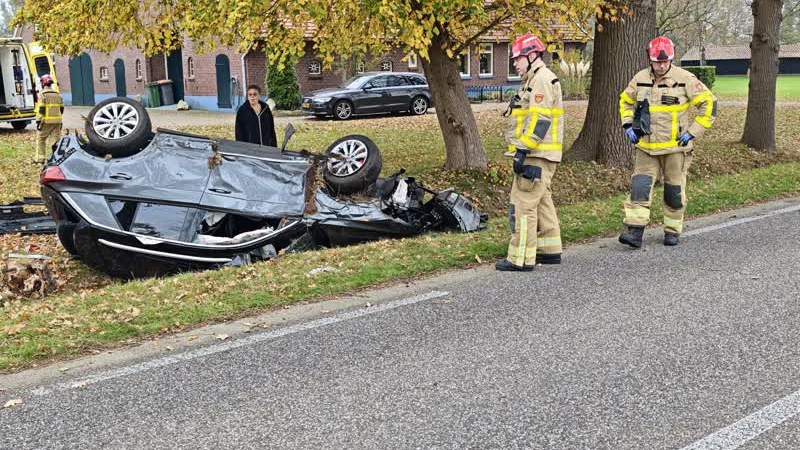 Een auto is zaterdagmiddag rond 14.15 uur is op de Varsseveldseweg (N330) bij Halle op de kop in de ...