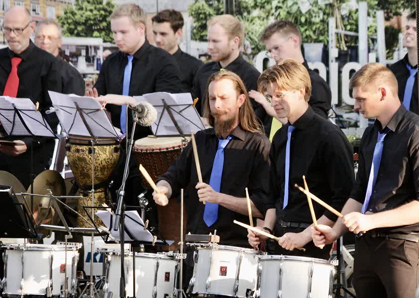 De vrijdagavond begon met een muzikaal slagwerkspektakel: een uit muziekverenigingen samengesteld slagwerkensemble van maar liefst vijftig muzikanten liet de noordzijde van de Markt dreunen op het ritme van trommels, bassen en showslagwerk. Vanaf de volle terrassen genoten bezoekers van het muzikale schouwspel, terwijl kinderen in de luwte van het podium op straat gingen zitten om alles van dichtbij te volgen. Het beeld vatte precies de laagdrempelige charme van het festival.
