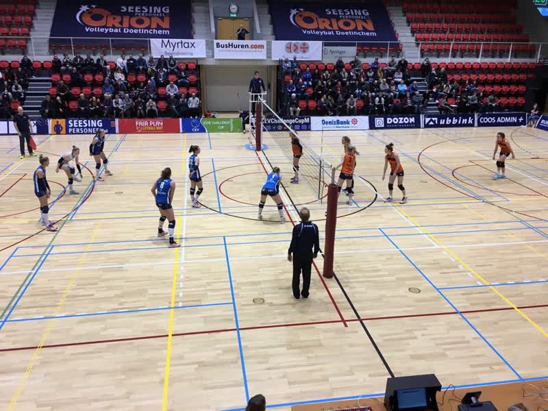 Topdivisionist Orion, dat ook in de vorige ronde al een stunt behaalde door eredivisionist Weert uit te schakelen, speelde met veel energie. Toch ging de eerste set ging naar Sliedrecht (20-25), de tweede set werd wel gewonnen door de Doetinchemse dames: 25-22. De sets daarna was Orion niet in staat er een echte stunt uit te halen, want ook de derde set (19-25) en vierde set (20-25) gingen uiteindelijk naar de tegenstander uit Papendrecht.