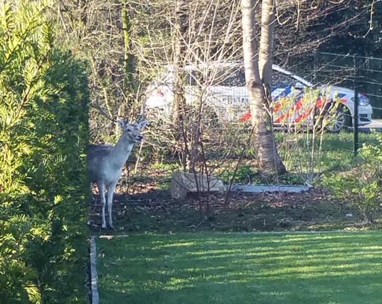 Het damhert was dinsdagochtend ontsnapt vanuit een park in de buurt. Het beest was met zijn hoofd vast komen te zitten in het prikkeldraad. Bij het losmaken van het hert nam het dier de benen en sprong over de afrastering.