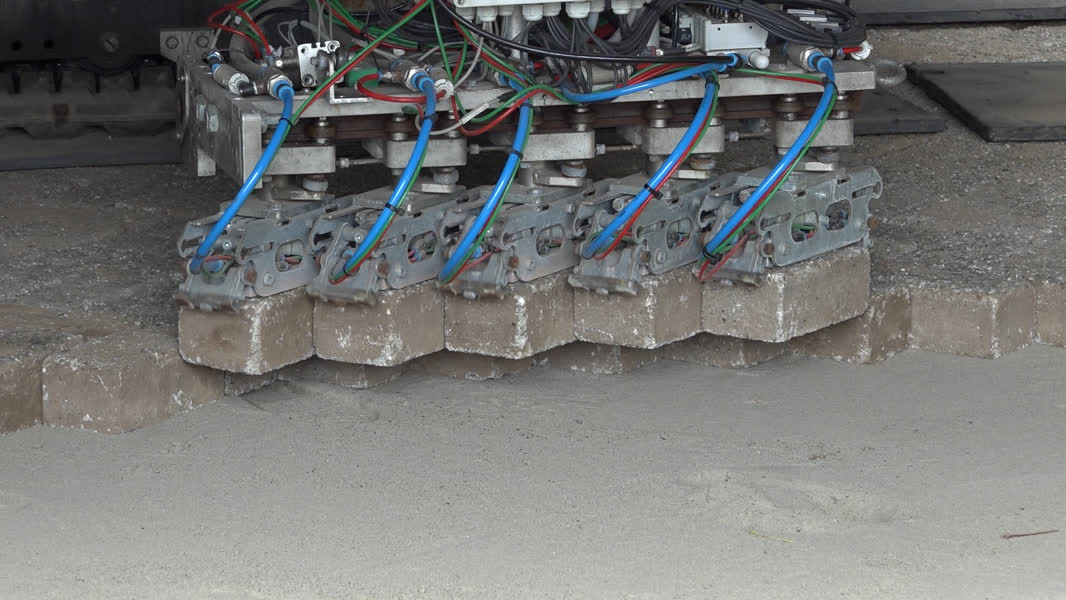 Het is niet eenvoudig om gebruikte stenen opnieuw te leggen met een robot. “De stenen liggen hier al dertig, veertig jaar, waardoor hun bovenkant behoorlijk ruw is”, legt Bröring uit. Tijdens het verplaatsen worden de stenen met vacuümtechniek opgetild, maar door het ruwe oppervlak hecht het vacuüm niet altijd goed. Daardoor kunnen stenen op onverwachte momenten loskomen en vallen. "Maar daar hebben we nu wat op gevonden. Nu werkt het hier goed."