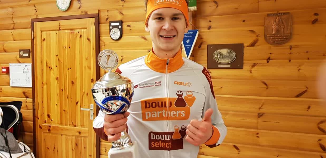 “Ik ben gewoon vol gas eroverheen geklapt en heb een gecontroleerde sprint gereden”, zegt De Gier van beloftenteam Bouwpartners over zijn laatste ronde in de marathon op natuurijs. Ondanks een koppositie in de laatste bocht, is hij tevreden met zijn uiteindelijke derde plek. “Ik rekende me ook nog niet rijk. Je sprint volle bak en je hoopt erop, maar de andere jongens kwamen er met iets meer snelheid overheen. Gelukkig kon ik nog wel het podium bestijgen.” Zo stond De Gier als beloftenrijder opeens op het podium. Ondanks de afwezigheid van enkele toppers is de schaatser blij met de prestatie en de bijbehorende aandacht. “Dat zie je wel terug in de nieuwsberichten, dat de verrassende B-rijder even derde wordt. Dat is natuurlijk hartstikke mooi.”