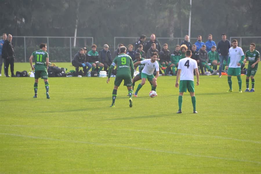 Het oefenduel in Sotogrande op het strakke veld van Polo Club Santa María begon een klein half uur later, omdat beide ploegen in een groen tenue op het veld verschenen. De club uit Gibraltar zou in een wit shirt spelen, maar die shirts waren nog niet op bestemming aangekomen. Tot die tijd speelde Europa FC in oranje hesjes en daarin was het ook beter dan De Graafschap. Een vrije trap van Ale Carascal Aviles leverde binnen tien minuten een voorsprong op voor de Gibraltarese club. De Graafschap kwam moeizaam op gang, maar kreeg via onder meer Leeroy Owusu een aardige mogelijkheid op de gelijkmaker.